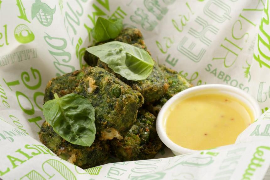 Paruošimas: pakaitiname šaldytus žirnelius (70°C temp. 2 minutes), sudedame visus ingredientus, sutriname iki kreminės tekstūros.